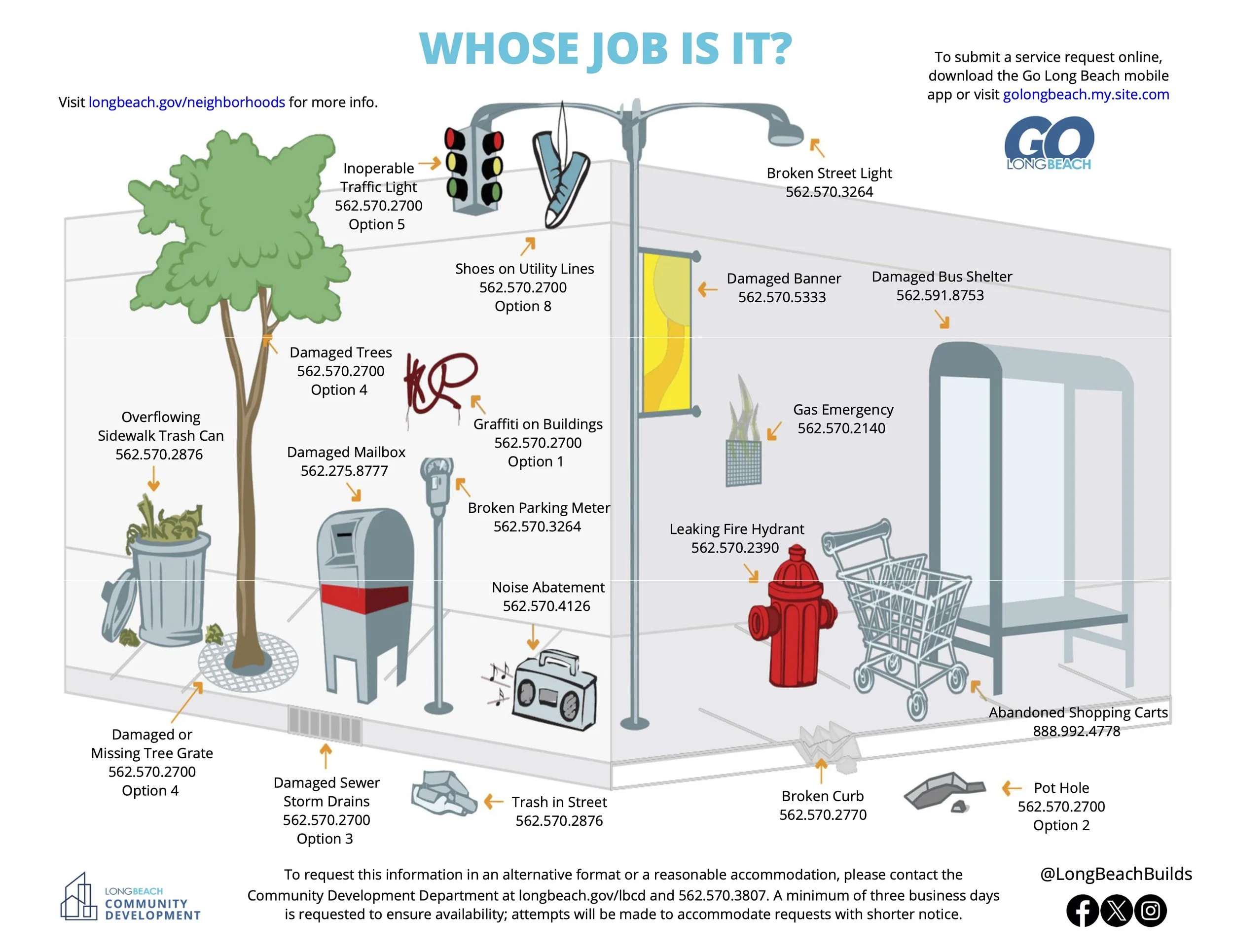 To report damaged trees or missing/damaged tree grates, call 562-570-2700, option 4.